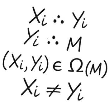 ∀i:(Xᵢ ∵ Yᵢ ∧ Yᵢ ∵ M ∧ (Xᵢ, Yᵢ) ∈ Ω(M) ∧ Xᵢ ≠ Yᵢ)